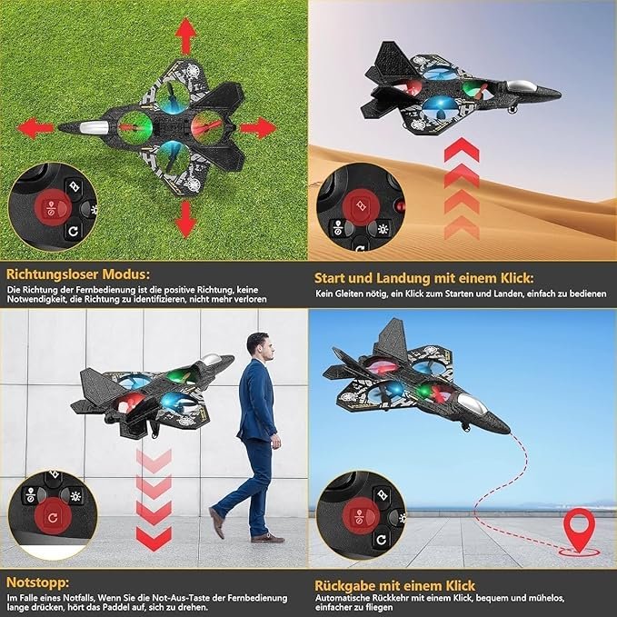 Remote Control Fighter Jet RC Airplane 2.4GHz L0712 – RTF Flying Plane Toy with LED Lights, USB Charging & Stable Flight